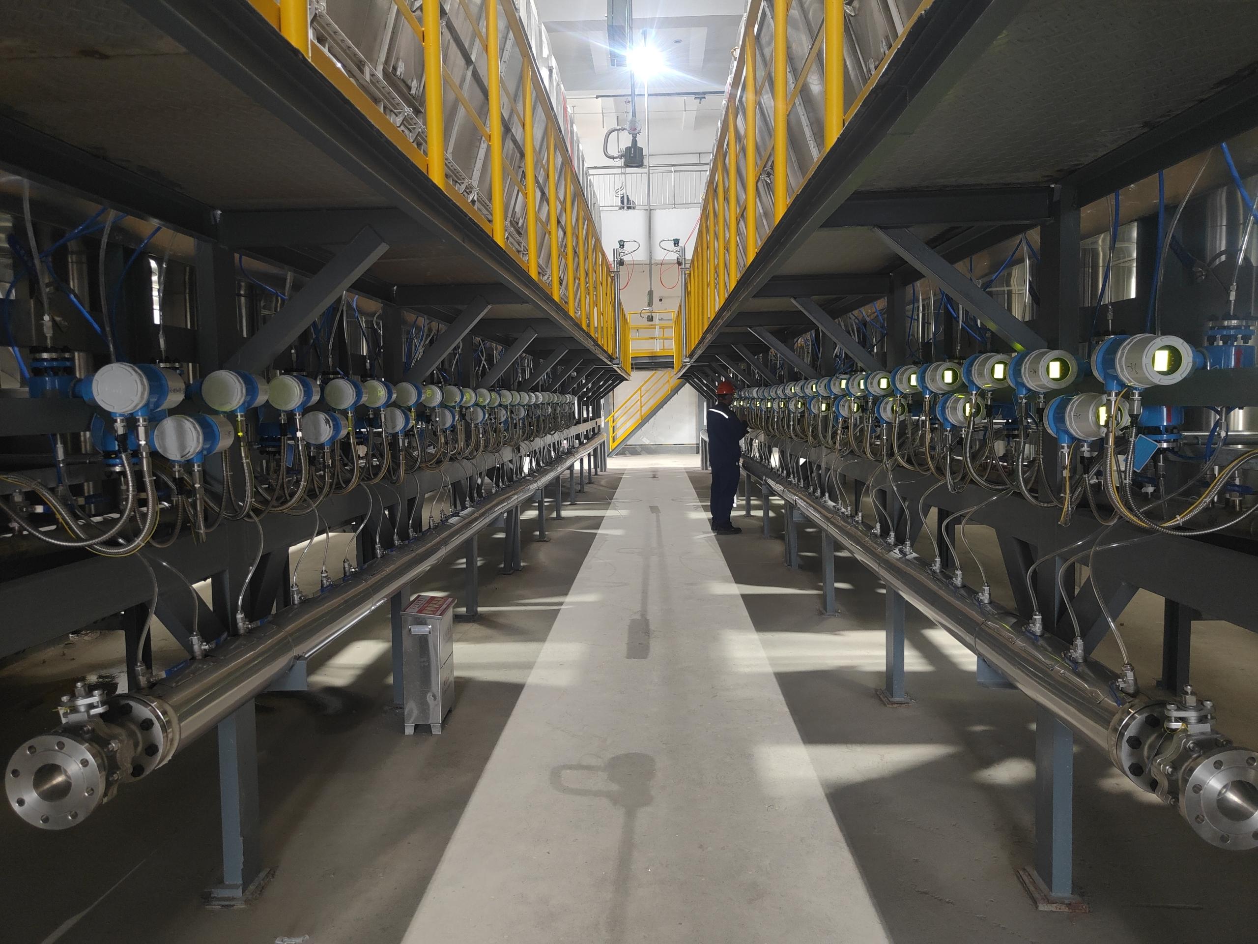 MF2電磁流量計在在流化床裝置中實現工藝水流量的精確測量,為反應系統穩定運行提供數據支持